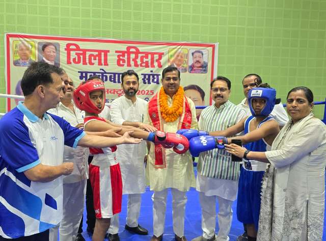 हरिद्वार के योग स्थली स्टेडियम, रोशनाबाद में मुक्केबाजी के रिंग में जोश, ऊर्जा और खेल भावना का अद्भुत संगम देखने को मिला। जिला मुक्केबाजी संघ द्वारा आयोजित जिला स्तरीय मुक्केबाजी प्रतियोगिता का उद्घाटन विधायक आदेश चौहान, भाजपा प्रदेश उपाध्यक्ष राकेश गिरी, जिलाध्यक्ष आशुतोष शर्मा, जिला उपाध्यक्ष लव शर्मा एवं रोहन सहगल ने संयुक्त रूप से किया। अतिथियों ने खिलाड़ियों का उत्साह बढ़ाते हुए कहा कि मुक्केबाजी जैसे खेल युवाओं में अनुशासन, आत्मविश्वास और दृढ़ता का संचार करते हैं।