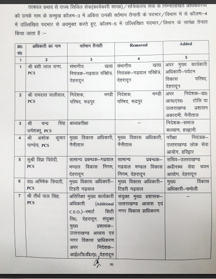 शासन ने देर शाम किये पीसीएस अफसरों के तबादले May 10, 2025May 10, 2025 naveen chauhan Listen to this article न्यूज 127.शासन ने देर शाम बड़े पैमाने पर पीसीएस अफसरों के तबादले किये हैं। अफसरों को नवीन तैनाती स्थल पर तत्काल प्रभाव से कार्यभार ग्रहण करने के निर्देश दिये गए हैं। देखे सूची किसे कहां मिली नई तैनाती:—
