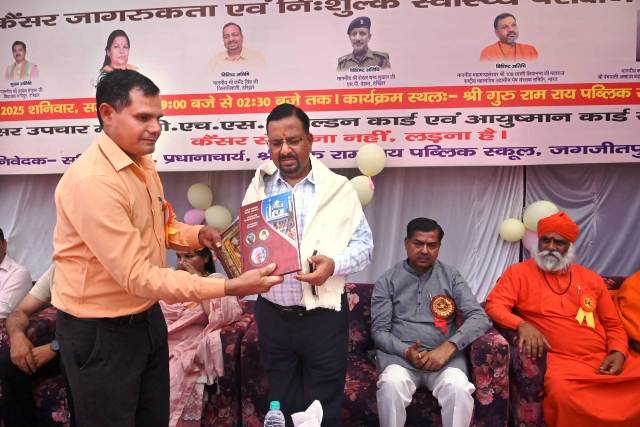 श्री गुरु राम राय पब्लिक स्कूल जगजीतपुर में श्री महंत इन्दिरेश अस्पताल देहरादून की ओर से आयोजित कैंसर जागरूकता एवं निशुल्क स्वास्थ्य शिविर का जिलाधिकारी कर्मेंन्द्र सिंह,महापौर किरण जैसल,विधायक आदेश चौहान और महामंडलेश्वर शिवानंद महाराज ने संयुक्त रूप से दीप जलाकर शुभारंभ किया।