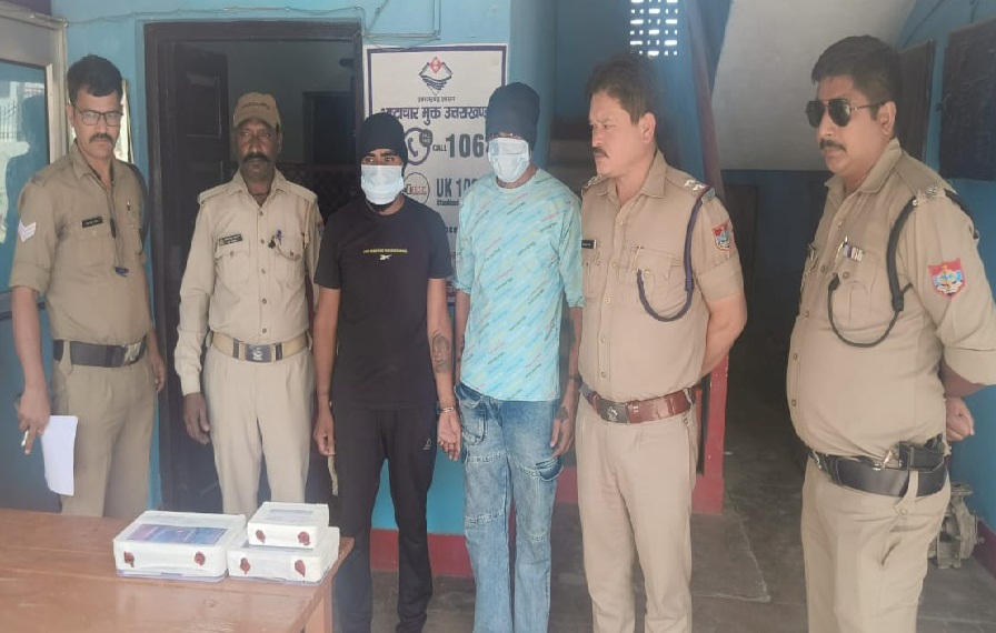 गिरफ्तार अभियुक्त के नाम अमरीक सिंह पुत्र गज्जन सिंह निवासी ग्राम चंदनपुर थाना गदरपुर जनपद उधम सिंह नगर और सुखवंत सिंह पुत्र लखबीर सिंह निवासी सिंह ग्राम बरवाला थाना केलाखेड़ा जनपद उधम सिंह नगर हैं।