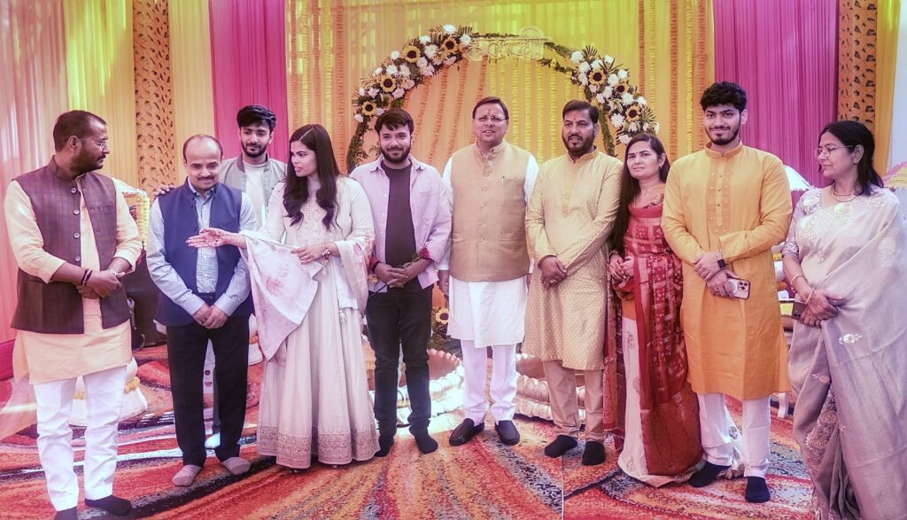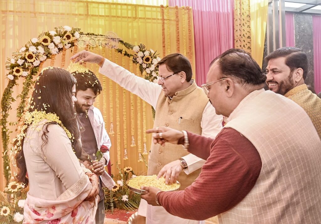इस अवसर पर पुष्कर सिंह धामी ने वर वधु पर पुष्प वर्षा कर आशीर्वाद व उपहार भी दिया। नव युगल के उज्जवल भविष्य के लिये परिजनों को मंगलकामनाऐं प्रेषित की। नवयुगल के सुखमय जीवन की कामना की।