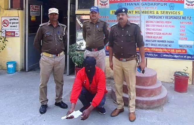 वरिष्ठ पुलिस अधीक्षक जनपद उधम सिंह नगर द्वारा नशे का कारोबार करने वाले व्यक्तियों के विरुद्ध चलाये जा रहे अभियान के अन्तर्गत पुलिस अधीक्षक काशीपुर क्षेत्राधिकारी के कुशल निर्देशन व थानाध्यक्ष के निकट पर्यवेक्षण में थाना गदरपुर पुलिस टीम द्वारा दिनांक 19-11-2022 को सायंकालीन गश्त के दौरान अभियुक्त को गिरफ्तार किया गया।