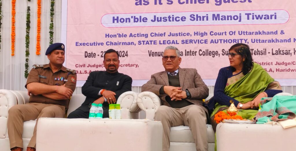 राज्य विधिक सेवा प्राधिकरण के तत्वाधान में जिला विधिक सेवा प्राधिकरण द्वारा जनता इंटर कॉलेज में बहुद्देश्य विधिक सेवा एवं जागरूकता शिविर का आयोजन किया गया। शिविर का उद्घाटन, कार्यवाहक मुख्य न्यायमूर्ति उत्तराखंड हाईकोर्ट एवं कार्यपालक अध्यक्ष राज्य विधिक सेवा प्राधिकरण मनोज कुमार तिवारी द्वारा दीप जलाकर किया गया।