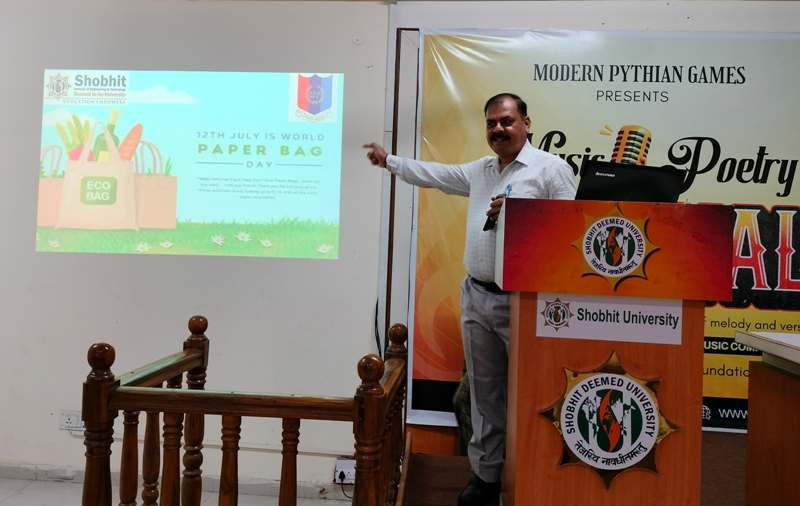 शोभित विश्वविद्यालय मेरठ में 70 यूपी बटालियन एनसीसी के कैडेट्स द्वारा विश्व कागज थैला दिवस मनाया गया। इस अवसर पर एक संगोष्ठी का आयोजन किया गया, जिसका संचालन विधि विभाग के प्रोफेसर डॉ. शुभम शर्मा ने किया।
